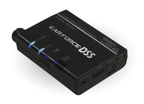 The Ear Force DSS 7.1 channel Dolby surround sound processor transforms any stereo headset into full, immersive surround sound for playing Xbox 360, PlayStation 3 or PC games and watching movies with Blu-ray or DVD players. It works with any set of stereo headphones and is the perfect complement to the Turtle Beach Ear Force series of stereo gaming headsets (X31, X11, XLC, Z1, Z2 and PX21). The optical digital input easily connects to a game console or media player for Dolby 7.1 channel surround sound and the analog input can also be used to upgrade analog stereo audio sources to Dolby Pro Logic IIx for virtual surround sound. A bass boost control adds sub-woofer effects for enhanced realism to any audio source.With the Ear Force DSS, video game and movie fans will be able to hear distinct audio events happening all around them, greatly enhancing the overall experience and rewarding gamers with a newfound competitive edge. DSS users playing games and watching movies on their game consoles will actually hear the 7.1 surround sound from certain 5.1 channel audio tracks via additional “hidden” channels called Dolby EX.